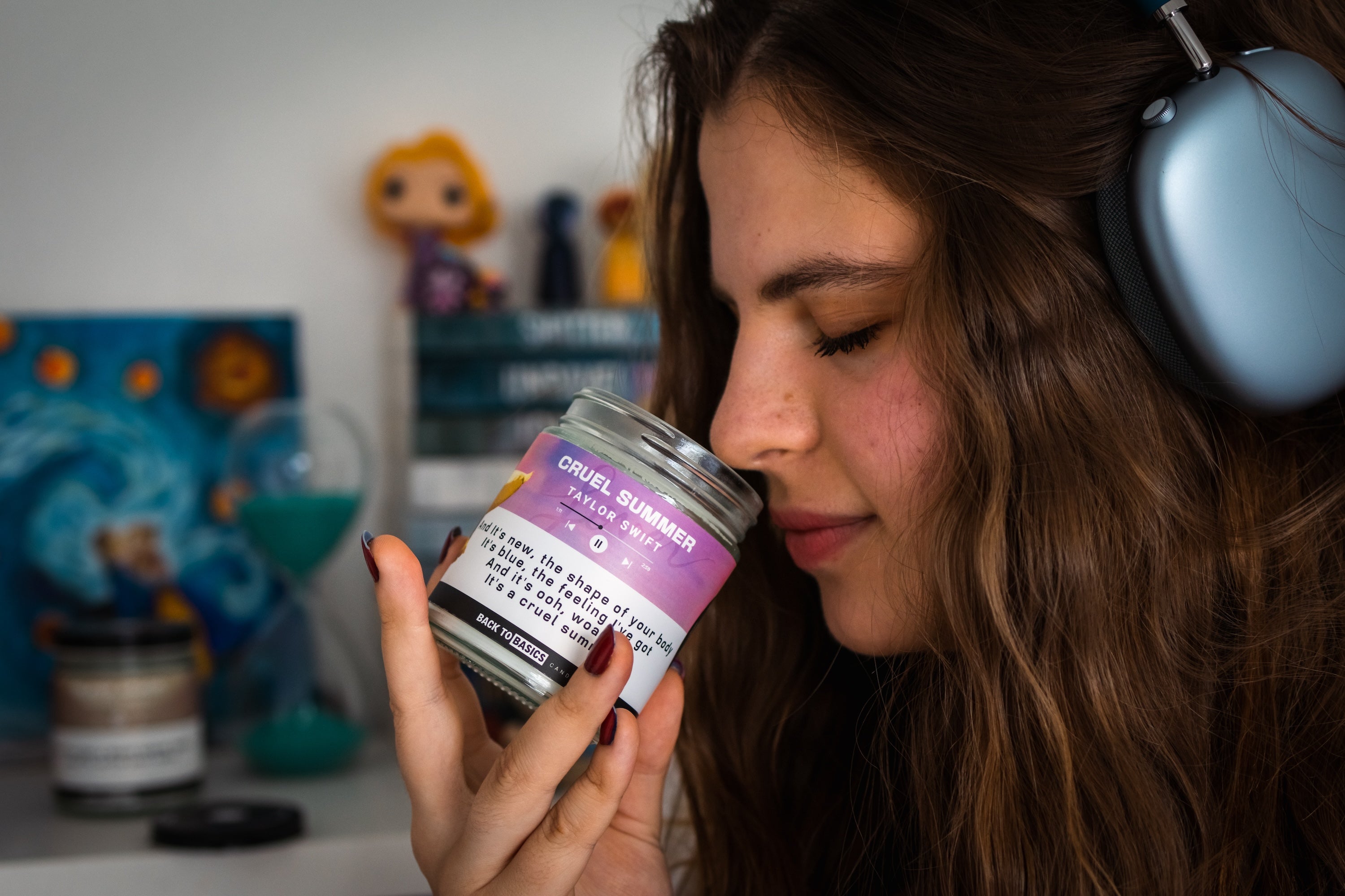 It's about your passion—the unforgettable concert, the artist you adore, the lyrics that move you. This candle is directly inspired by the song's elements, graphics, and colors, creating a vivid connection to the music you love.